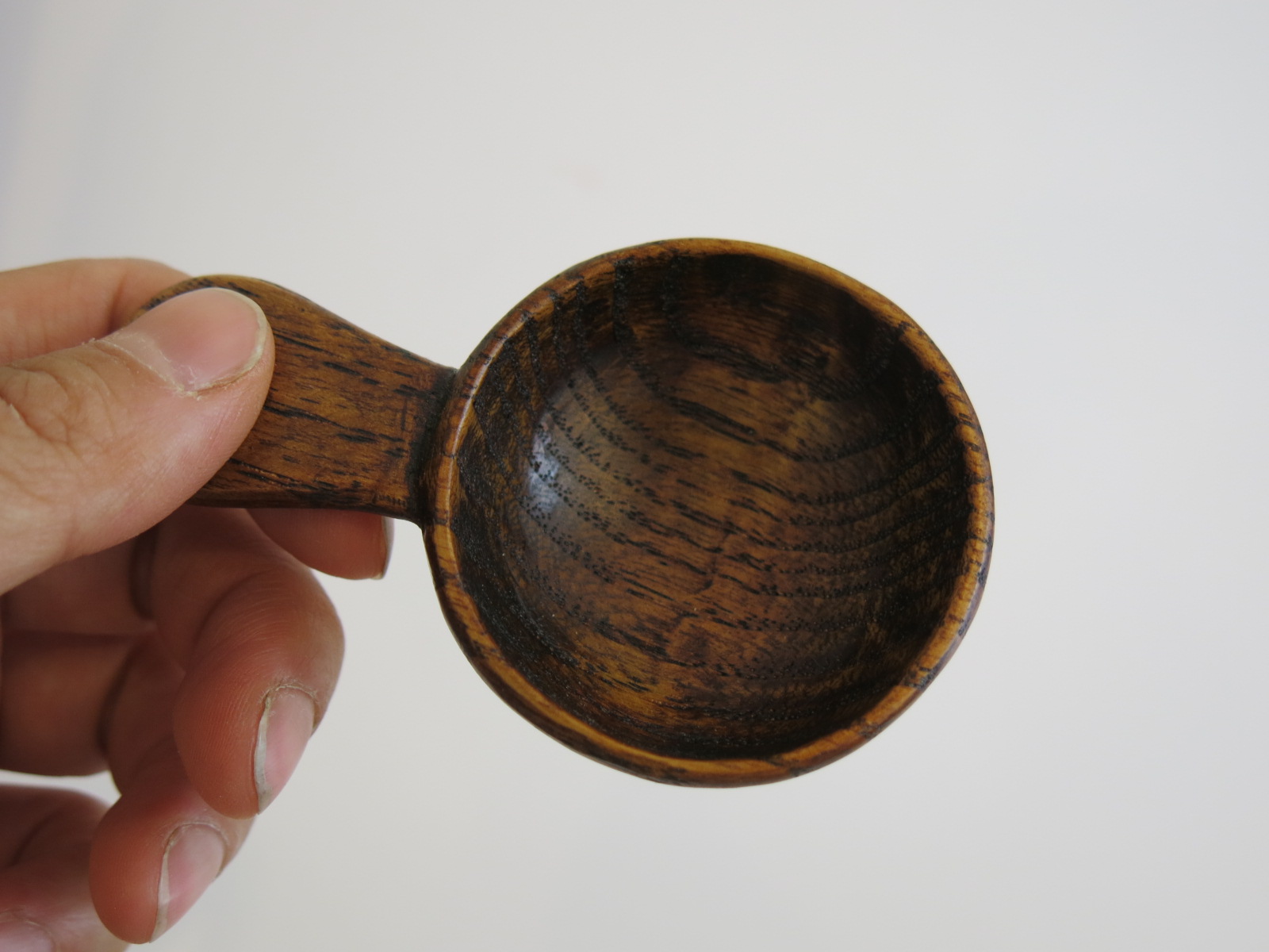 サイズ:さじΦ5.2㎝ さじの深さ2.5㎝ 持ち手含む長さ9㎝ 素材:クリ.漆 藤原啓祐さんのコロンとしたフォルムのかわいい さじです。 砂糖や塩を掬うのにも、コーヒー匙、小さなおつまみを入れる うつわとしても楽しい匙です。